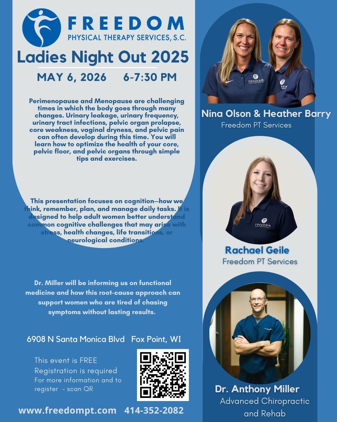 Join us for Ladies Night Out 2026 at Freedom Physical Therapy Services for an informative and empowering evening focused on women’s health.